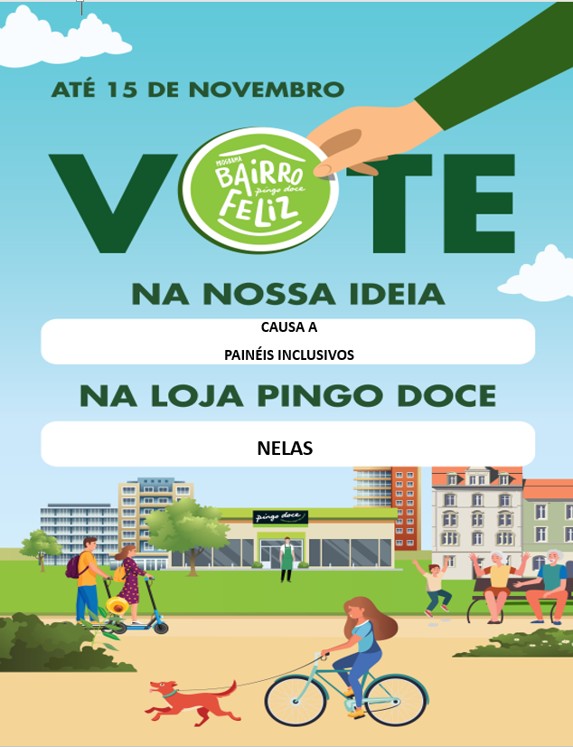 Foi apresentada, em nome do Agrupamento de Escolas de Nelas, uma candidatura ao programa Bairro Feliz, uma iniciativa do Pingo Doce. Concorremos com a causa "Painéis Inclusivos" e fomos contemplados. Agora há que votar muito nela e, para isso, precisamos do contributo de todos. A causa visa a obtenção do prémio no valor de 1000 € (mil euros) concedido pelo Pingo Doce, que revertem para a aquisição de equipamentos de imagem para as escolas EBFA e ESN.